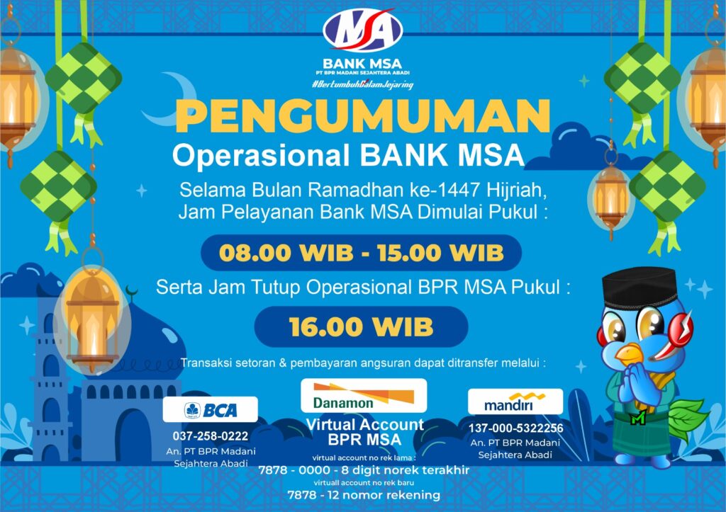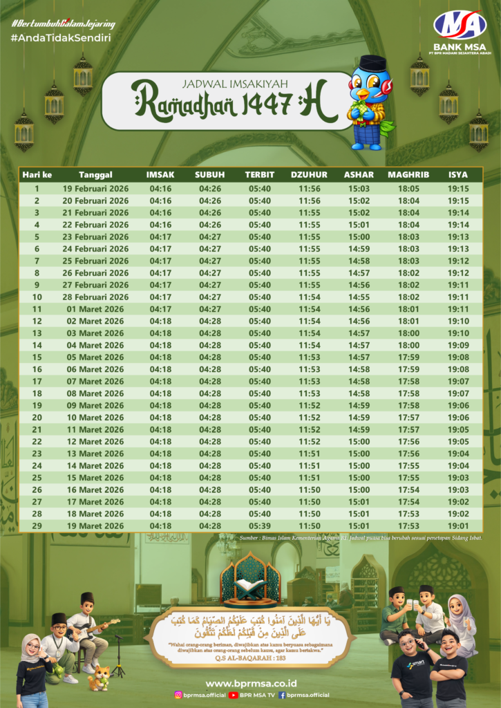 Selamat Menunaikan Ibadah Puasa Ramadhan 1447 H bagi seluruh Sobat MSA. Berikut kami sampaikan jadwal layanan kantor selama bulan Ramadhan serta jadwal imsakiyah untuk Kota Yogyakarta dan sekitarnya.