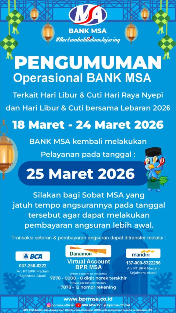Selamat Menunaikan Ibadah Puasa Ramadhan 1447 H bagi seluruh Sobat MSA. Berikut kami sampaikan jadwal layanan kantor selama bulan Ramadhan serta jadwal imsakiyah untuk Kota Yogyakarta dan sekitarnya.